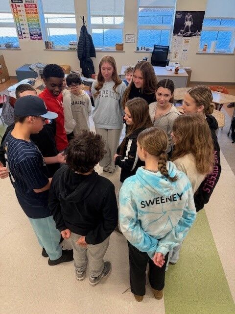 Woodbury students playing Caught Red Handed in Advisory with peer Advisory Mentors from SHS